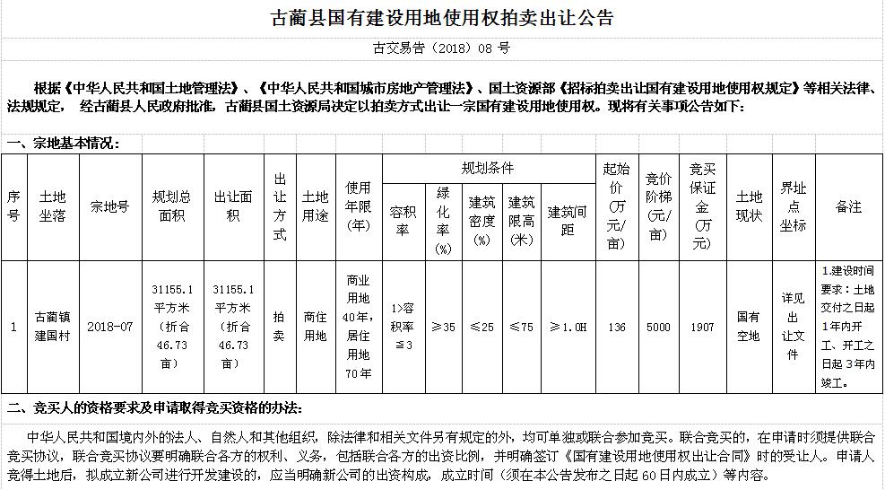 古藺縣國有建設(shè)用地使用權(quán)拍賣出讓公告