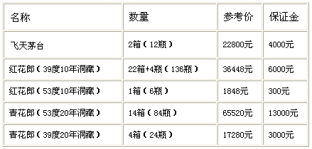 以上白酒均經(jīng)專業(yè)人員鑒定為正品,生產(chǎn)年份為2010年至2018年。拍賣標的物先整體后分拍,整體保證金為30000元整。